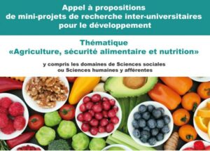 Appel à proposition de mini-projets de recherches inter-universitaires pour le développement : Thématique “Agriculture, sécurité alimentaire et nutrition” Objectif et contexte de l’appel à projet L’objectif principal du présent appel est de financer des mini-projets de recherches qui ont pour but principal